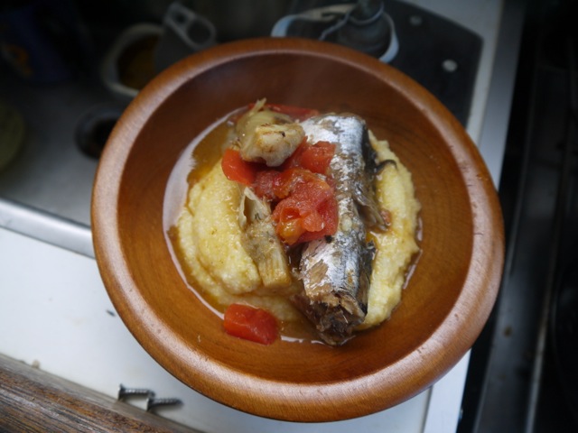 In cold conditions your body burns more calories in order to generate heat. The diet should vary accordingly. Four thousand calories it’s considered not healthy for the average person but it’s a good daily rate when sailing in cold weather. It is important to eat often and eat caloric food, including vegetables and fruit. It is very important to be able to cook warm dishes. Don’t worry about your waist size, we lost several pounds even if we were eating pork fat everyday for just sitting in the cold.