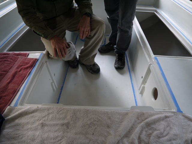We didn’t try to keep heat in the cabin because our boat is so poorly insulated that it was a desperate task. Instead we kept the companionway and forward hatch open all the time it was possible to help air circulation. The companionway door was never shut down during passage, luckily the conditions made it possible as no waves ever came into the cockpit . We dried out mattresses and locker as soon as we had a chance, and in few situations we had to fight mold growth with a mix of water and bleach in a spray bottle.
