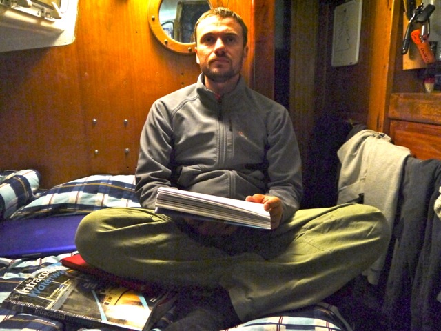 We purchased all our winter clothes in Thrift Stores and we are going to be happy to leave them behind when warmer. After experience with the nice and expensive Ocean Gore-Tex gear on fancy sailing yacht I instead got myself PVC coat and overall from commercial fishing. I consider breathable foul water gear an unnecessary expense. They are very comfortable but breathable is not waterproof by definition, no matter what magical expensive technology is adopted, it is not waterproof in heavy rain and gets very heavy when soaked. Also when you have to do some serious deck work you are going to sweat anyway so I don’t see the point. A more important piece of gear is some windproof jacket, and I found mountaineering jackets more valuable than sailing jackets. Another part of equipment that deserves investment of money are good and warm boots.