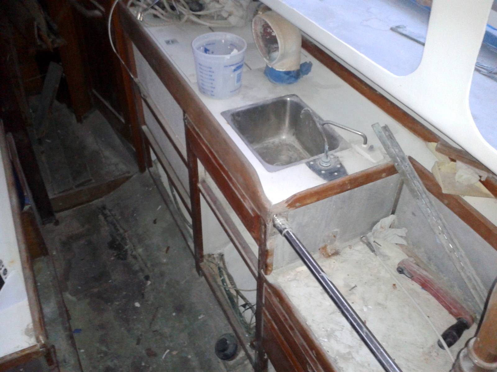 The floor had some visible rot, probably from water coming from the mast wires entering the cabin sole. Electrical system and plumbing needed a complete overhaul.