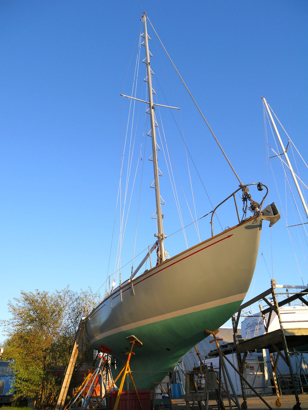 The boat was moved to a boatyard and as spring came we began our feverish work on her.