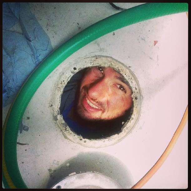 The previous day I worked on my water tank in the v-berth, then rushed onto the boat to prepare the dough and toppings for our Monday pizza night at the boatyard, then worked a little more while the dough was raising, to again rush and pick everything up and carry it to the breezeway on the other end of the boatyard. When I came back it was dark already and with a full belly and first signs of a carb crash I went quickly to bed. The next morning I woke up to the mess of cooking and working and everything else.
